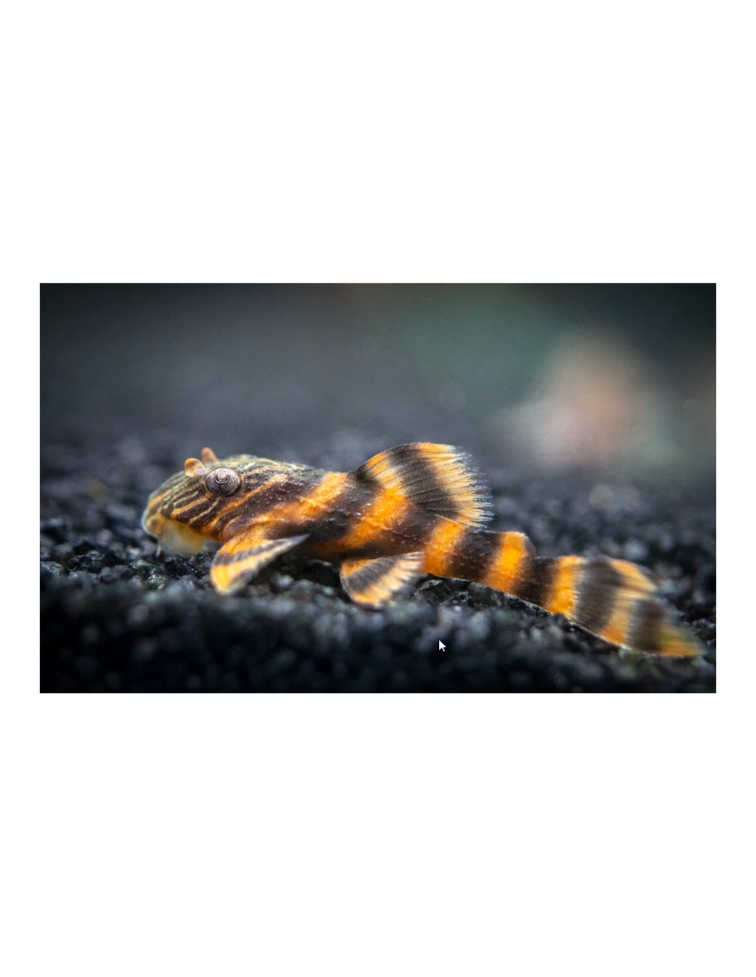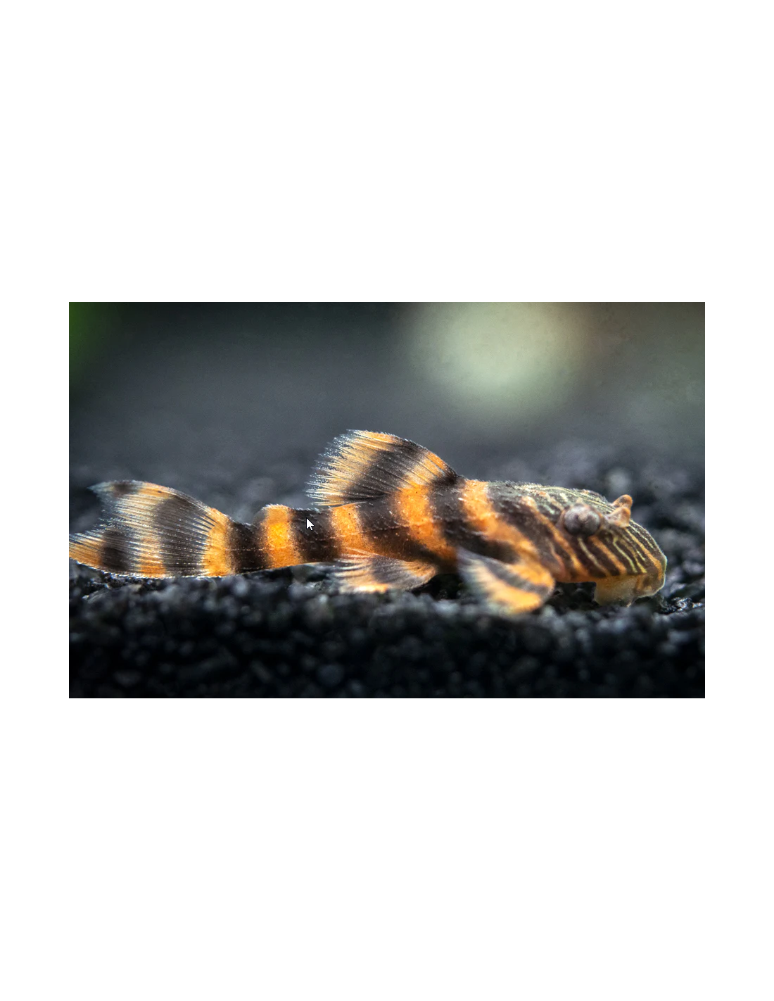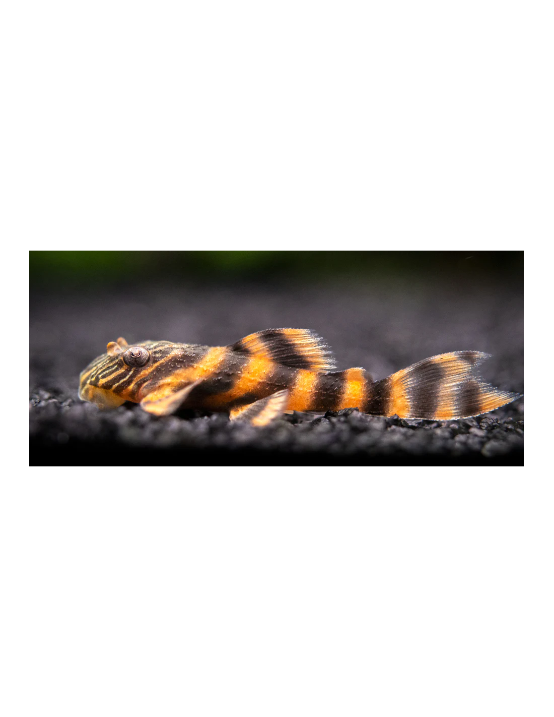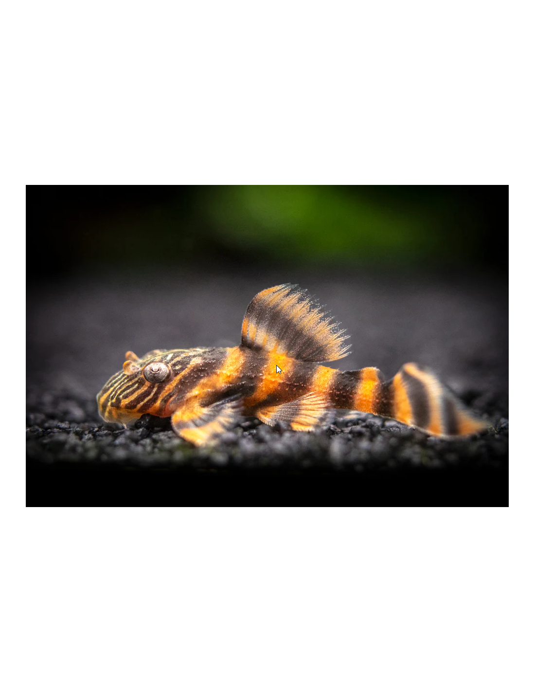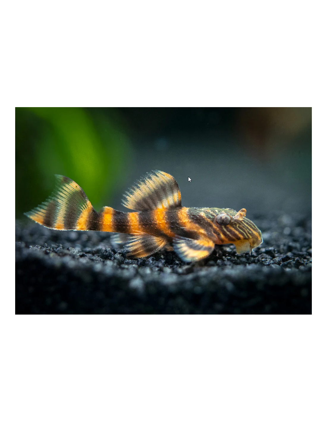 Pleco exótico de padrão tigre, ideal para aquários amazónicos bem estruturados. Robusto, pacífico e muito apreciado por aquariofilistas experientes.