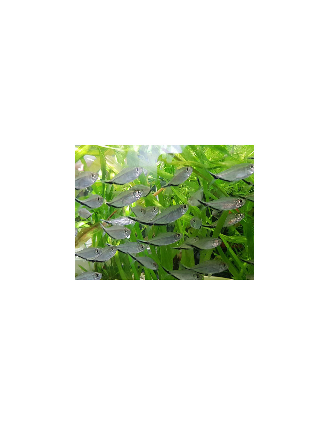 Apresenta um corpo prateado e alongado, com reflexos subtis que variam conforme a iluminação do aquÔrio. As barbatanas são transparentes, conferindo-lhe um aspeto elegante e natural. Quando mantido em cardume, exibe um comportamento muito interessante e harmonioso.